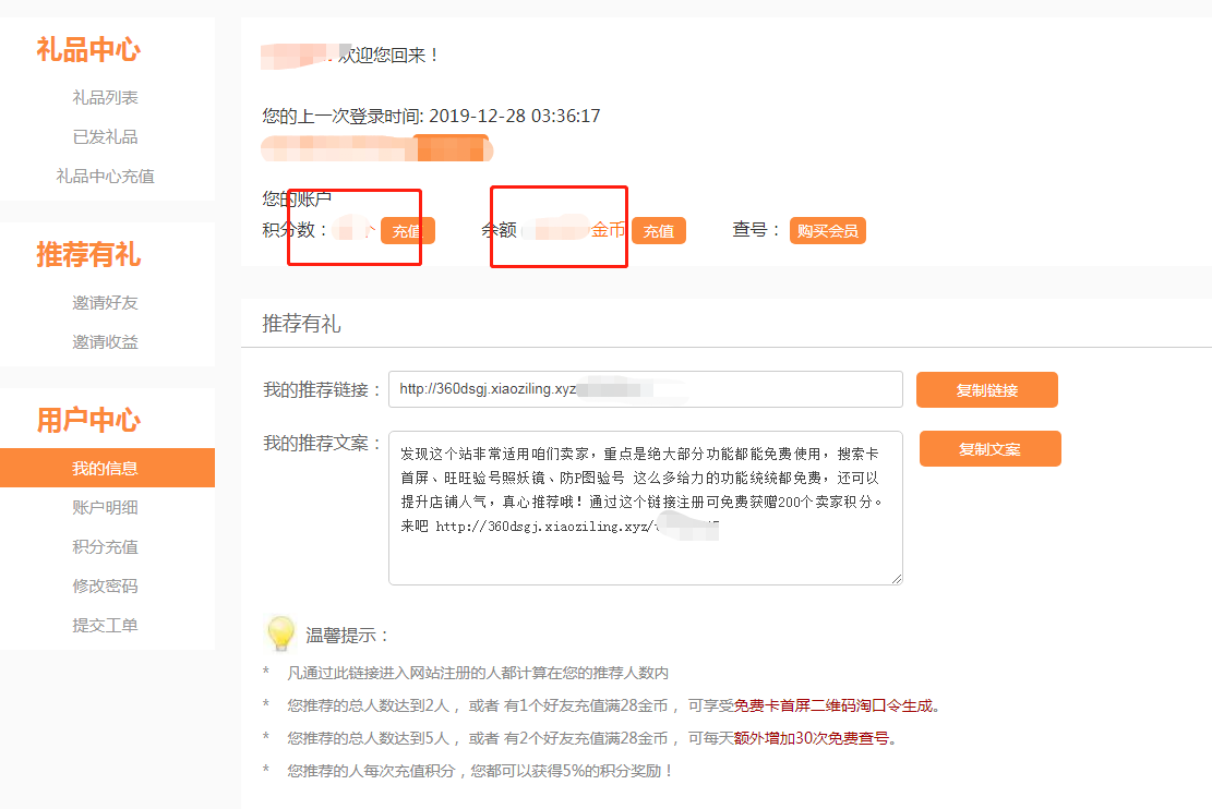 3.积分和金币也可用于工具箱消费,例如查号,放流量点击,收藏加购等等