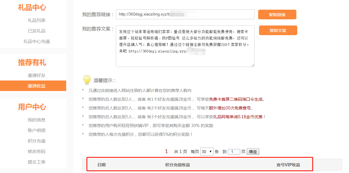 这里都会显示你每天的收益,只要稍加引导商家或者代放使用照妖镜充值VIP,充值积分,看的见的收益哦!